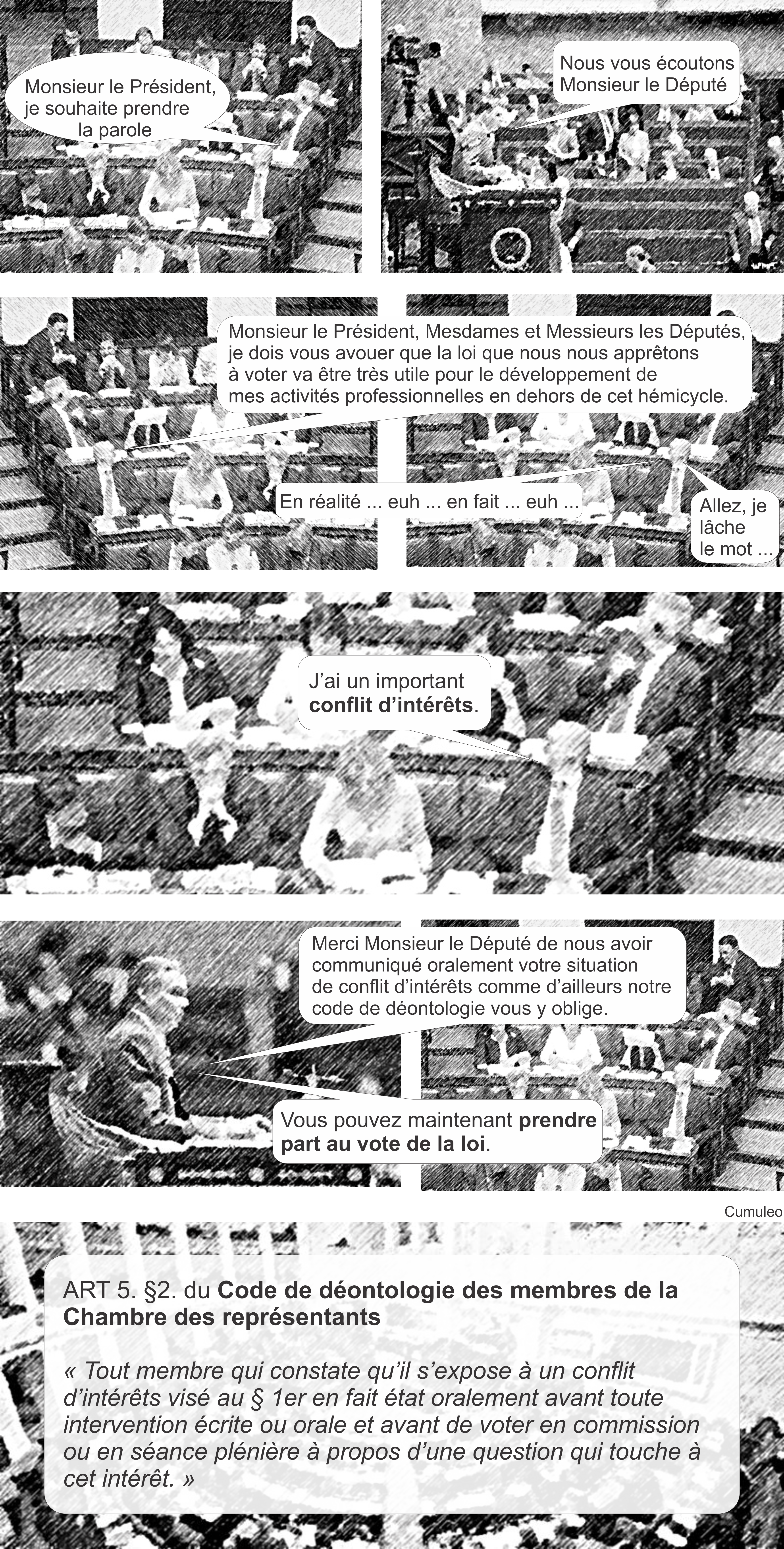 Découvrez la BD Une journée à la Chambre sur la gestion des conflits d'intérêts au Parlement fédéral.